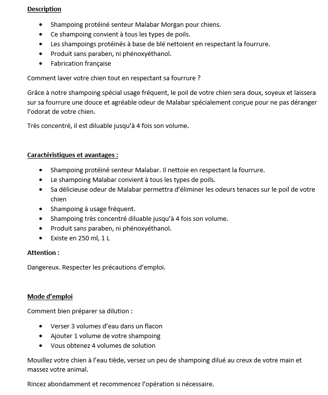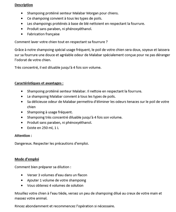 Shampoing Morgan Protéiné senteur Malabar 250 ML